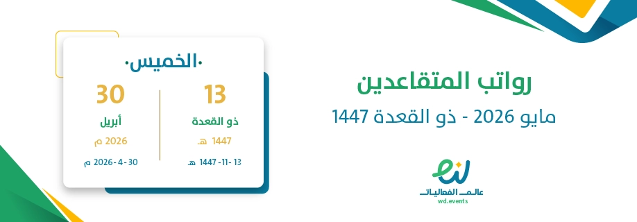 موعد صرف رواتب المتقاعدين – مايو 2026 – ذو القعدة 1447. وذلك يوم الخميس 30 أبريل 2026م – الموافق 13 ذو القعدة 1447 هـ.