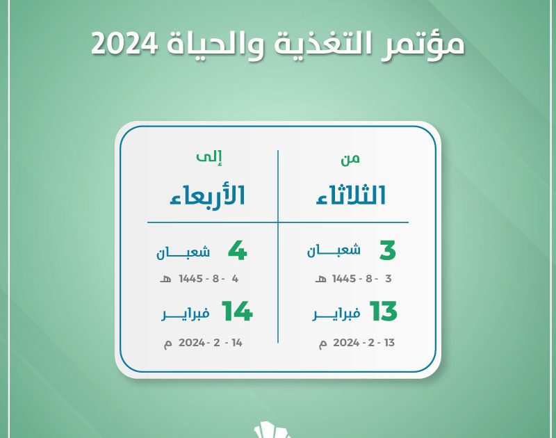 يناقش مؤتمر التغذية والحياة 2024 بتنظيم من إدارة التغذية العلاجية في المدينة الطبية الجامعية بجامعة الملك سعود. وذلك خلال يومي 13 و 14 فبراير الجاري، يناقش مؤشرات جودة الحياة وانعكاسها طبيًا، وجسديًا، وتغذويًا، ونفسيًا، واجتماعيًا.