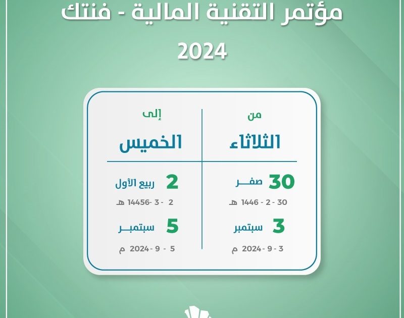 تستضيف مدينة الرياض فعاليات النسخة الأولى من مؤتمر التقنية المالية – فنتك 2024 خلال الفترة من 3 – 5 سبتمبر. وذلك تحديداً في واجهة روشن للمعارض.