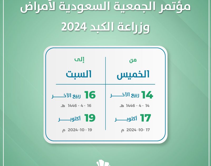 ومن المقرر إقامة مؤتمر الجمعية السعودية لأمراض وزراعة الكبد 2024 خلال الفترة 17 – 19 أكتوبر بحضور طبي واسع ومشاركة الخبراء والمتخصصين المحليين والدوليين. كل هذا من أجل استعراض أحدث التقنيات والتطورات الجديدة في مجال أمراض الكبد وعلاجه.