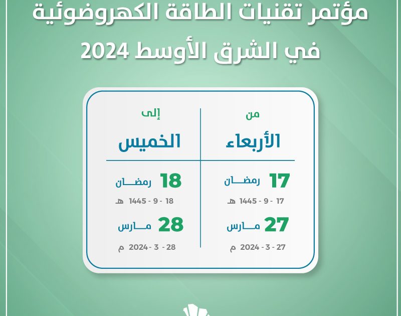 يعتبر مؤتمر تقنيات الطاقة الكهروضوئية في الشرق الأوسط 2024. مؤتمر فني بارز ومنصة مثالية لرواد الصناعة والخبراء في مجال الطاقة الشمسية. لمناقشة أحدث التطورات والابتكارات في هذا المجال المتزايد في المنطقة.