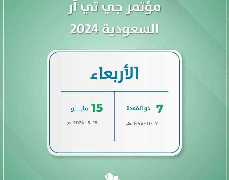 يقام بفندق موفنبيك بمدينة الرياض بالمملكة العربية السعودية مؤتمر جي تي أر السعودية 2024. وذلك يوم الأربعاء الموافق الخامس عشر من شهر مايو لعام 2024 ميلاديا. بينما يوافق هذا التاريخ السابع من ذو القعدة لعام 1445 هجريا.