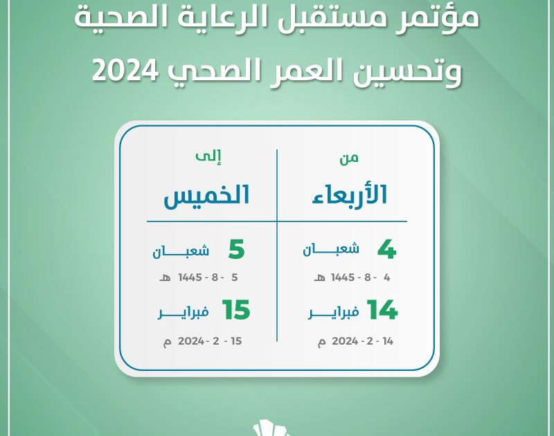 دعماً للمجال الطبي في المملكة ينطلق مؤتمر مستقبل الرعاية الصحية وتحسين العمر الصحي 2024 لمدة يومين 14 -15 فبراير.