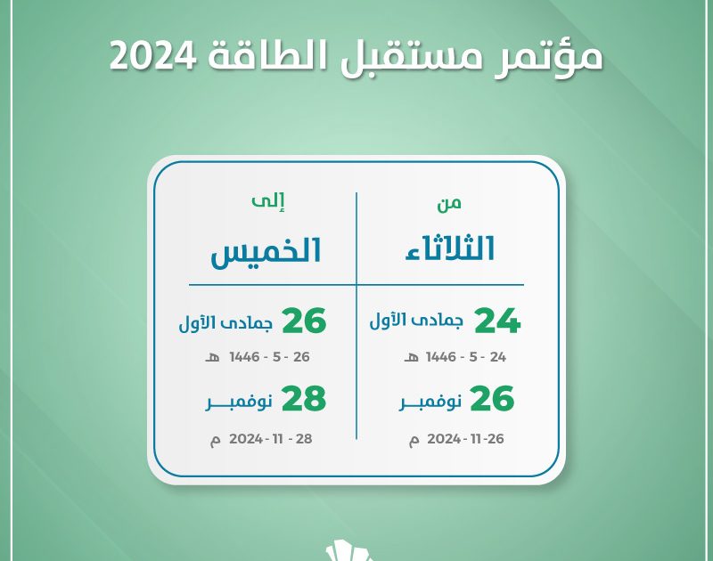 دعماً لرؤية المملكة 2030 ينطلق مؤتمر مستقبل الطاقة 2024 بمدينة الرياض خلال الفترة 26 -28 نوفمبر. ليكون بذلك فعالية الطاقة الأكثر تأثيرًا في المملكة العربية السعودية.