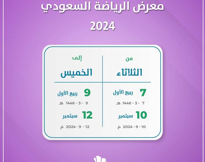 يعد معرض الرياضة السعودي 2024 فرصة مثالية لمحبي الرياضة واللياقة والصحة. سيقام المعرض في الفترة من 10 إلى 12 سبتمبر 2024 في أرينا الرياض. ويعد من أبرز الفعاليات الرياضية العالمية بفضل خبرة الجمعية المهنية لاقتصاديات الصحة ونتائج البحوث التي تمتد لأكثر من 50 عامًا في إدارة الفعاليات الرياضية.