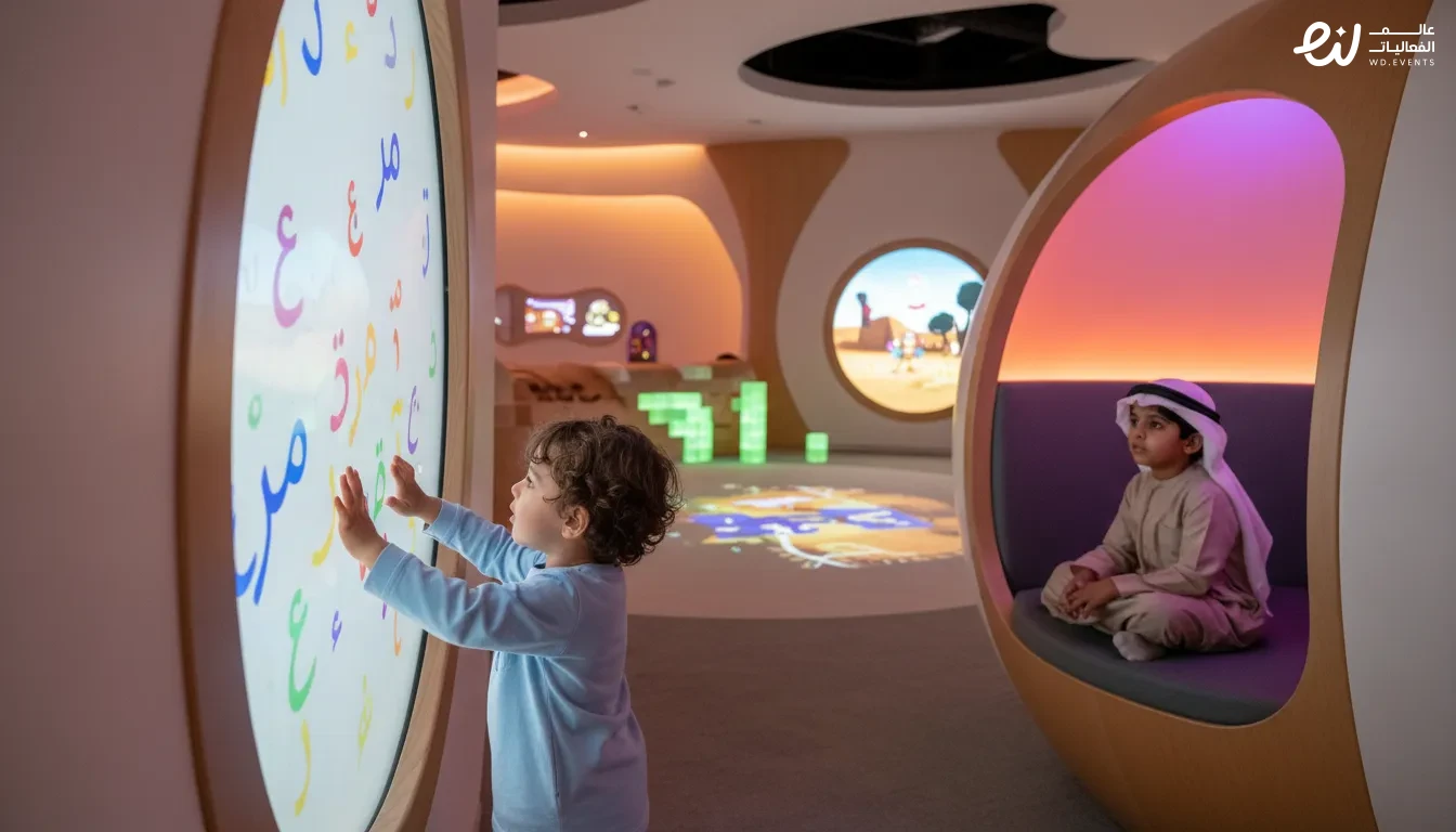 وفي السياق نفسه، يسعى المعرض إلى تحويل اللغة العربية من مادة دراسية تقليدية إلى تجربة حية يعيشها الطفل بكل حواسه. حيث ينتقل الزائر الصغير بين مجموعة من المحطات التفاعلية التي تجمع بين المعرفة والمتعة. كما تعتمد هذه المحطات على تقنيات حديثة وأساليب تعليمية مبتكرة تجعل الطفل يتفاعل مع الحروف والكلمات والقصص بطريقة ممتعة وسهلة الفهم. وبذلك يصبح التعلم رحلة مليئة بالاكتشاف بدلاً من كونه مجرد عملية تلقين تقليدية.