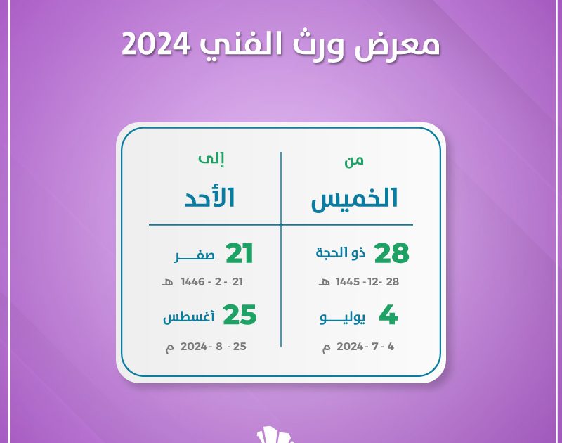 تستضيف بوليفارد رياض سيتي معرض ورث الفني 2024 خلال الفترة الرابع من يوليو حتى الخامس والعشرون من أغسطس الموافق الثامن والعشرون من ذو الحجة حتى الواحد والعشرون من صفر لعام 1446.