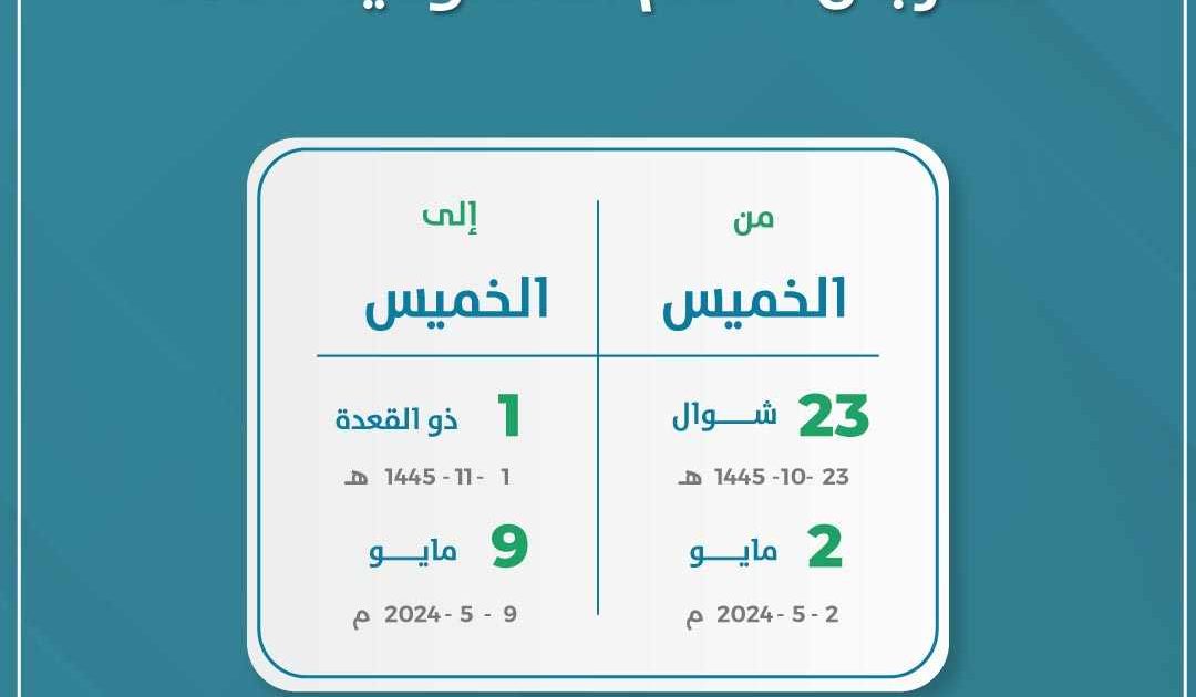 موعد عيد الفطر المبارك 1447/ 2026 في يوم الجمعة 1 شوال 1447هـ – الموافق 20 مارس 2026م . 1447/10/1 هـ…