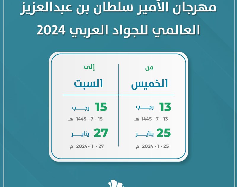 ويعتبر مهرجان الأمير سلطان بن عبد العزيز العالمي للجواد العربي 2024 هو حدث دولي للجياد العربية الأصيلة لسباق القدرة والتحمل والسرعة. حيث ينعقد في شهر يناير من كل عام لعدة أيام.