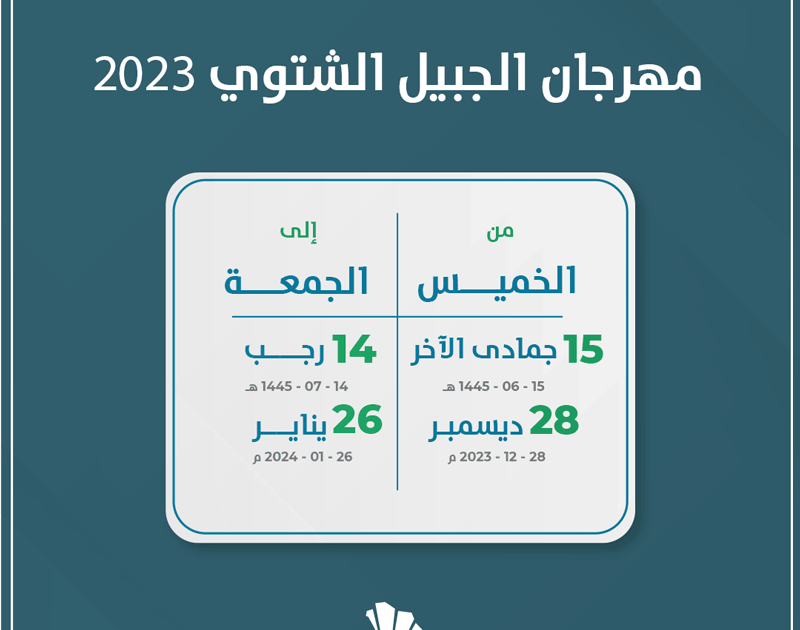 ينتظر عشاق التسوق انطلاق مهرجان الجبيل الشتوي 2023 للتمتع بالمناظر الخلابة في المدينة خلال الفترة 28 ديسمبر وحتى 26 يناير 2024. وهو معرض استهلاكي متنوع للتسوق والترفيه في مدينة الجبيل.