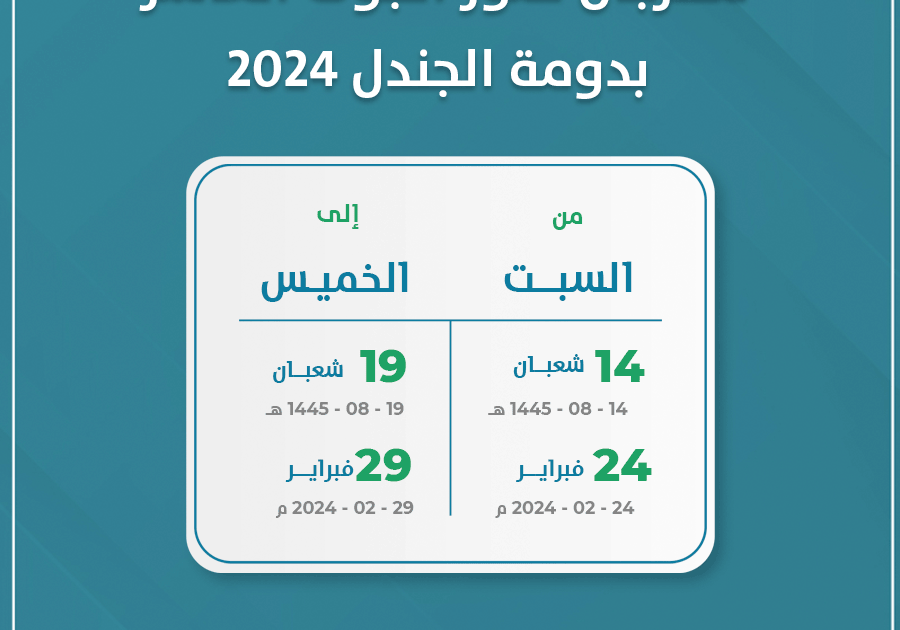 ومن المقرر إقامة مهرجان تمور الجوف العاشر بدومة الجندل 2024 خلال الفترة 24- 29 فبراير. وقد تحدد موعده بعد أن وافق صاحب السمو الملكي أمير منطقة الجوف على إقامة مهرجان التمور بنسخته الجديدة للسنة العاشرة في محافظة دومة الجندل. وذلك بالتزامن مع إجازة منتصف الفصل الدراسي الثاني.