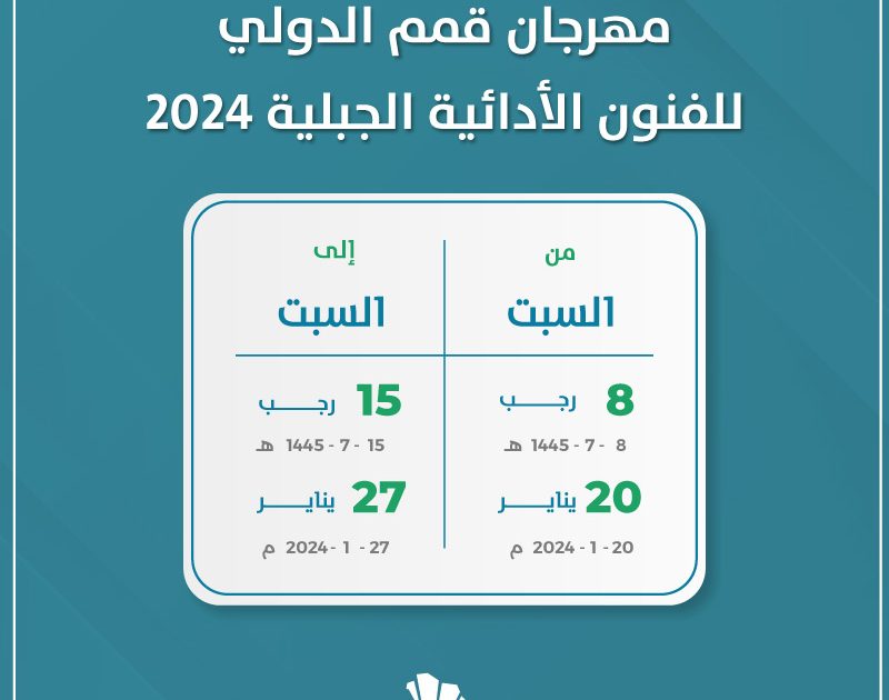 بطابع ثقافي سعودي عالمي تنطلق فعاليات مهرجان قمم الدولي للفنون الأدائية الجبلية 2024 خلال الفترة من 20 إلى 27 يناير 2024. ويضم المهرجان مشاركة فرق فنية محلية ودولية.