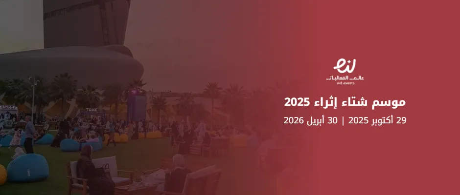 ينظم مركز الملك عبدالعزيز الثقافي العالمي إثراء بمدينة الظهران “موسم شتاء إثراء 2025”. وذلك فالفترة من 29 أكتوبر 2025  إلي 30 أبريل 2026 ميلادياً، بينما يوافق 7 جمادى الأولى وحتي 13 ذو القعدة 1447 هجرياً.