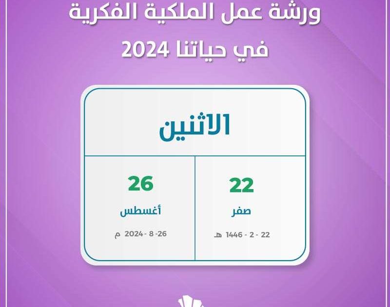 سينظم مركز دعم المنشآت الصغير والمتوسطة بالتعاون مع الهيئة السعودية للملكية الفكرية ومركز التنظيم التجاري ورشة عمل الملكية الفكرية في حياتنا 2024. تهدف هذه الورشة إلى تسليط الضوء على قضايا الملكية الفكرية وإبراز أهمية نظام الملكية الفكرية في الحياة الاقتصادية والثقافية والاجتماعية ولاستمرار الحوار الجاد الهادف بين كافة الشركاء وأصحاب المصالح والمهتمين بموضوع الملكية الفكرية. كما تهدف إلى رفع الوعي بدور الملكية الفكرية في حياتنا اليومية، والاحتفال بمساهمة المبتكرين والفنانين في تنمية المجتمعات.