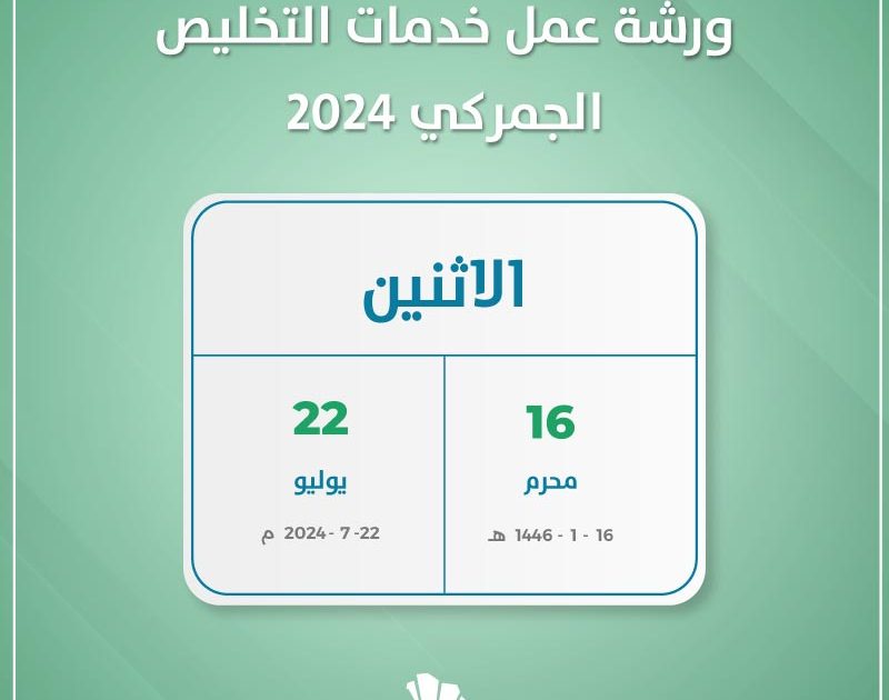 تستعد هيئه الزكاة والضريبة والجمارك لاستقبال ورشة عمل خدمات التخليص الجمركي 2024 يوم الاثنين الثاني والعشرون من يوليو 2024 الموافق السادس عشر من محرم 1446 هجري.